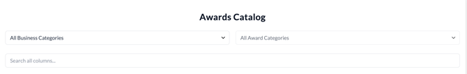 Here you have the ability to search the awards catalog depending on business category, award category, and search bar feature.