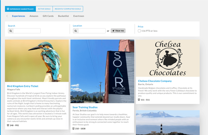 The rewards marketplace allows employees to redeem points for meaningful rewards.