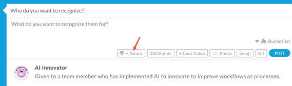 If you would like to give an award through the recognition section, you can do this here through the "award" button (if your role allows awards to be provided out).