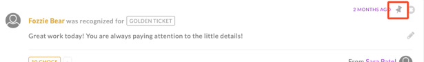 For those with the permission to manage pinned items, you will now be able to see a pin icon on the top right of the posts in the activity feed (including recognitions or notes).