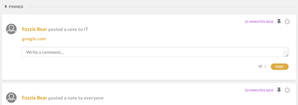 This article will go over how to pin/unpin notes and other activity feed items. This is only available to users who have pinning/unpinning permissions.