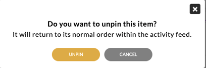 If you click on the pin icon on one of the pinned posts, a verification asking if you want to unpin this item will pop-up: