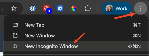 - At the top right, click More > Open Incognito Window