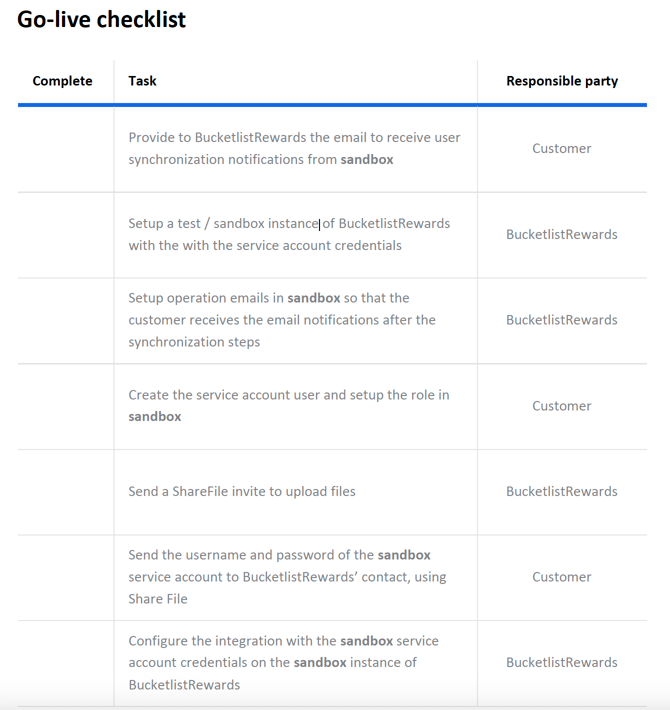 - Go-Live checklist