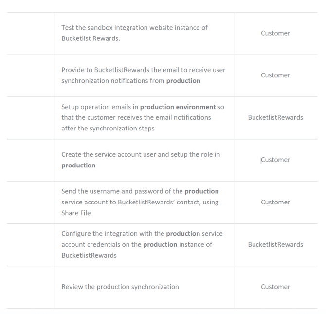 You need to share the username and password with your Bucketlist Rewards contact, in a secure manner using ShareFile. They will setup the integration for you on Bucketlist Rewards’ side.