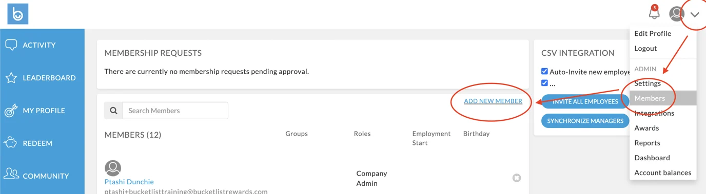 Employees must be added to Bucketlist Rewards before they can participate in recognition and rewards.