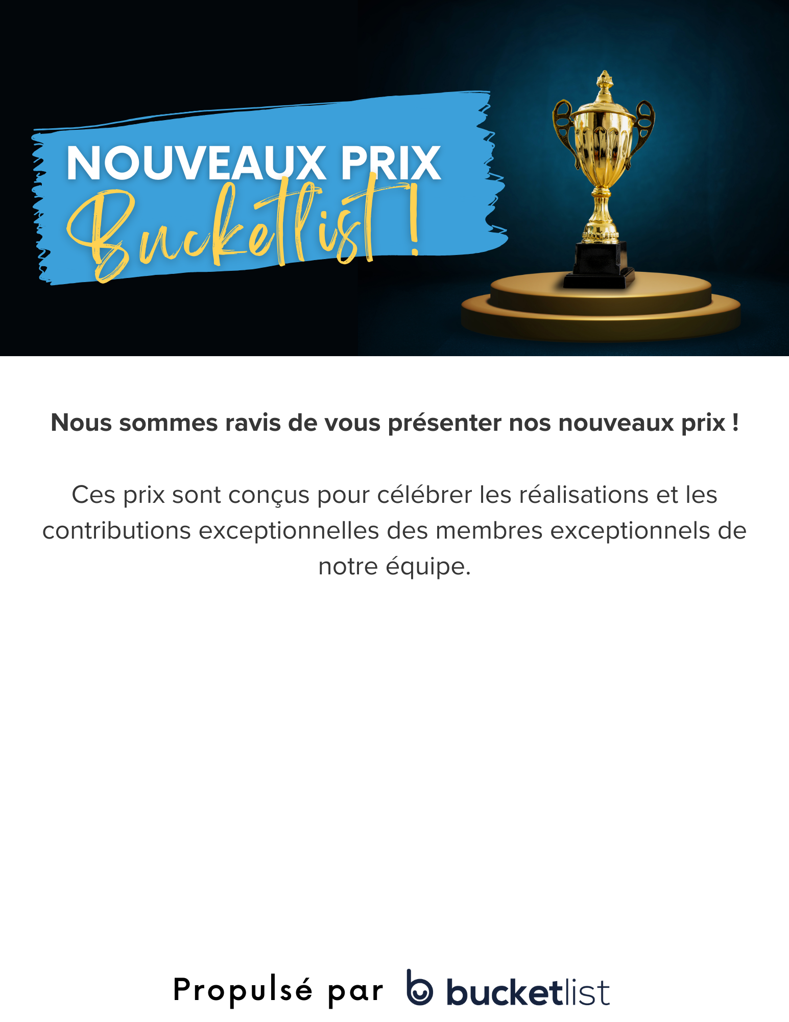 Vous trouverez ci-dessous des liens vers divers supports marketing qui peuvent vous aider à susciter l'enthousiasme et l'engagement après votre lancement. Cliquez sur n’importe quel lien ci-dessous pour télécharger et utiliser !